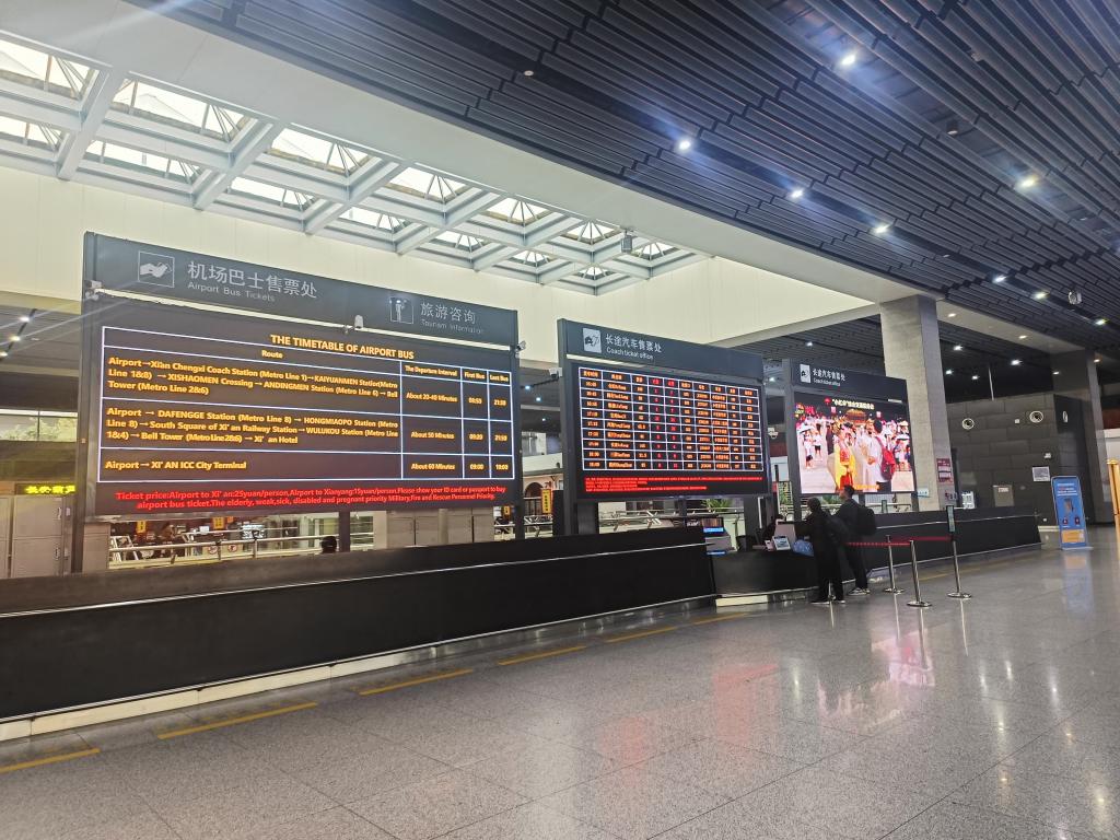 机场巴士乘车区位于T2/T3综合交通中心大厅内,咨询电话是:029-32291888.